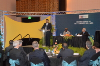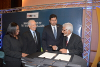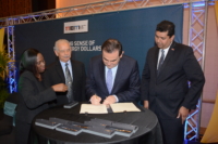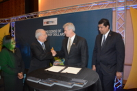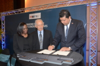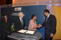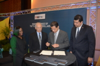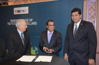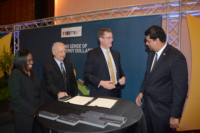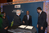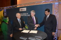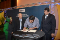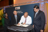 Minister of Energy and Energy Affairs Mr Kevin Ramnarine as he signs the MOU